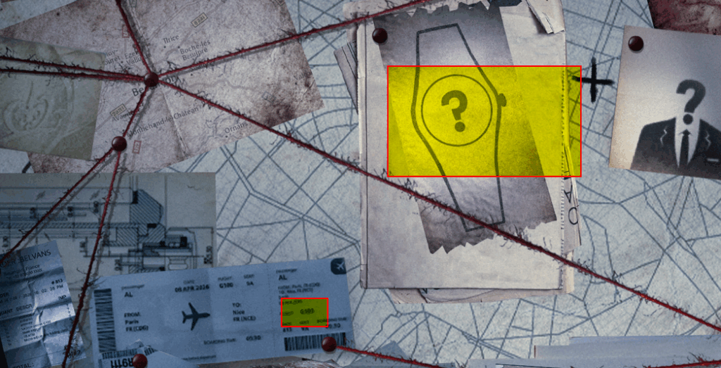 Un autre indice, la montre avec le point d’interrogation: une montre a bracelet intégré?… J’espère!