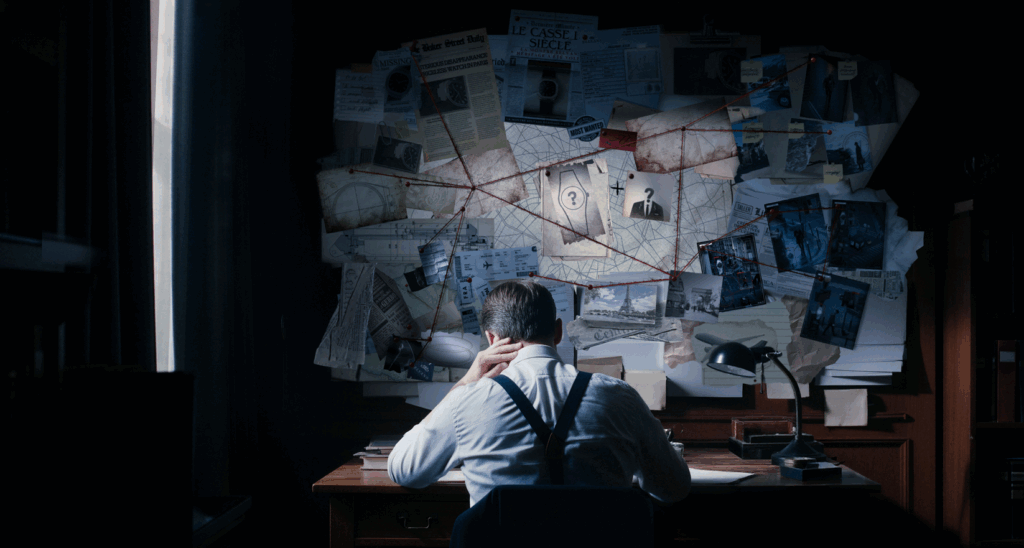 L’épisode 1 prend la forme d’un tableau d’enquête, rempli de documents, de références géographiques et de détails visuels. Belvans invite clairement le spectateur à ralentir, zoomer, analyser.