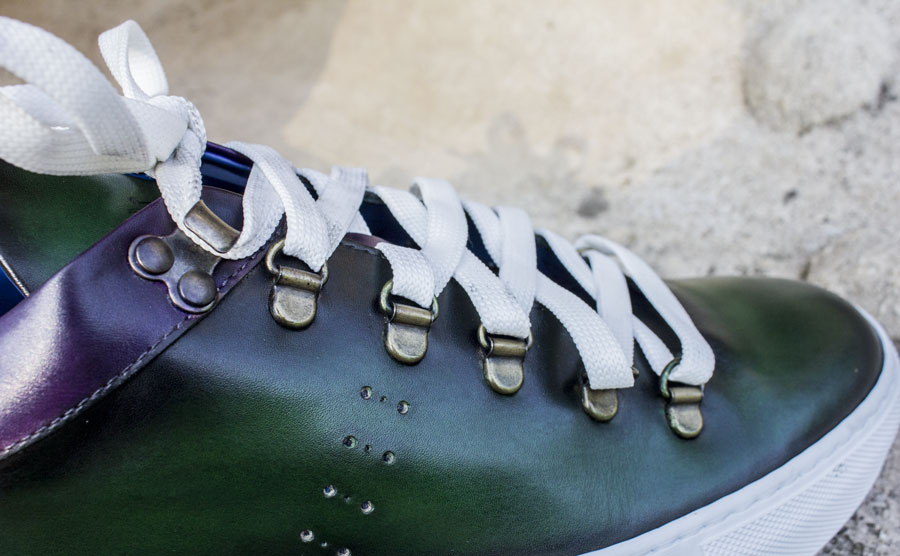 Il faut un temps de rodage, et je recommande de bien les lacer et de marcher un peu avec pour les assouplir. D’ailleurs, elles sont plus belles quand elles sont bien lacées, à la différence de sneakers plus sportives que l’on porte lâches.