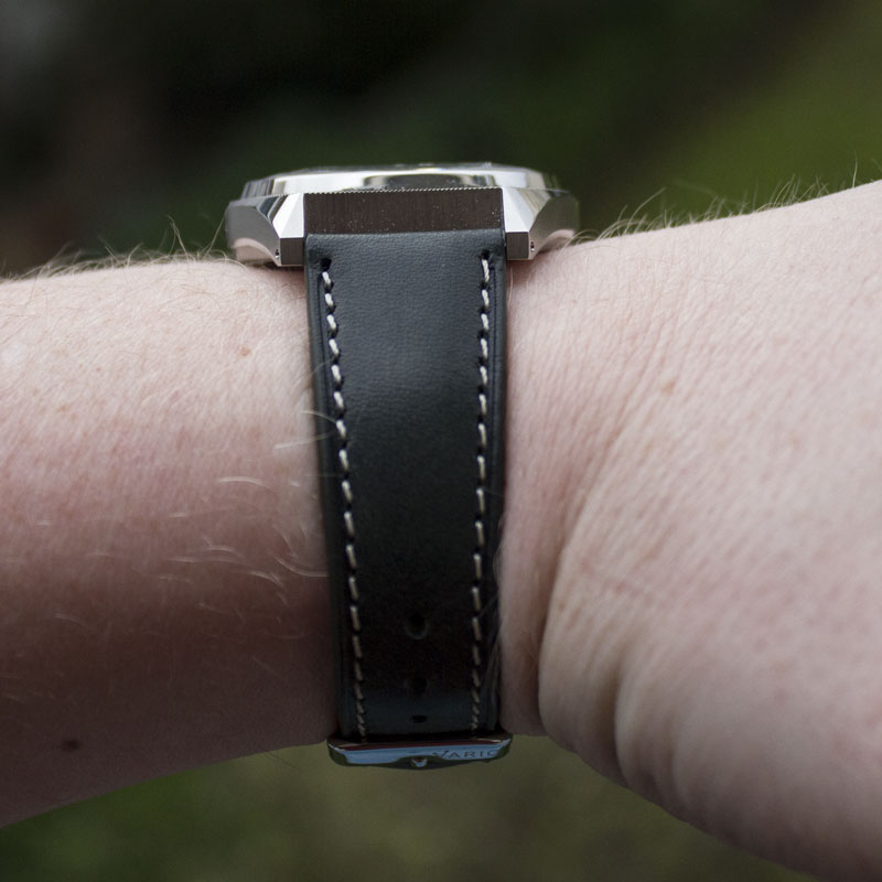 The crown is flat and designed to sit flush within the case at 12 o’clock. While visually discreet, it is quite large, making it easy to grip. The position feels unusual at first, but Vario clearly engineered a robust crown stem system that prevents twisting or stress when adjusting.